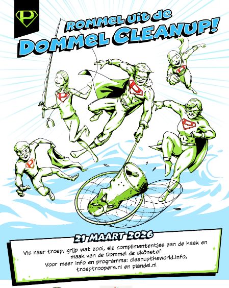 Vis naar troep, grijp wat zooi, sla complimententjes aan de haak en maak van de Dommel de skônste! Op zaterdag 21 maart 2026, het begin van de lente, vindt de eerste editie van de Rommel uit de Dommel Cleanup plaats.